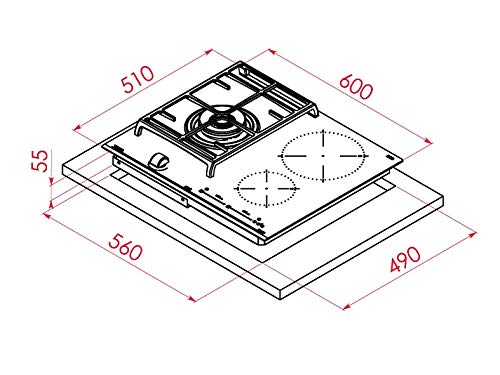 Induzione + gas. 3 zone di cottura (2 induzione + 1 gas). Funzioni dirette: Simmering, melting e mantenimento del calore