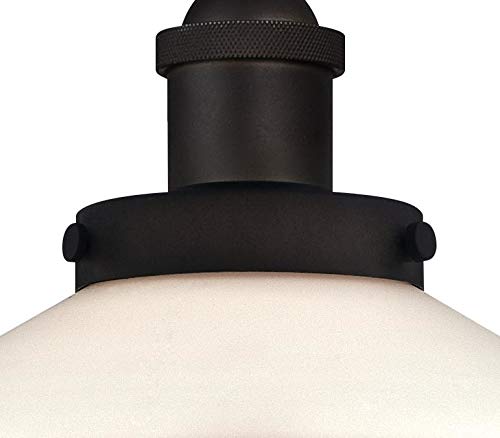 La lampada a sospensione monoluce con paralume in vetro smerigliato opale e finitura bronzata ad olio dona un fascino retro a qualsiasi ambiente