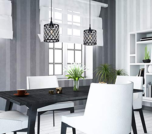63627 Apparecchio di illuminazione a sospensione a luce singola da interno, finitura in nero opaco con cristalli, lampadina inclusa