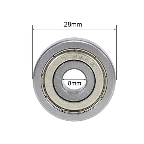 638ZZ Cuscinetti a sfera Z2 8 mm x 28 mm x 9 mm in acciaio al carbonio a doppia schermatura, 5 pezzi