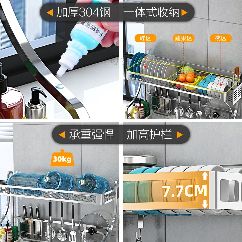 New! 64-91cm Length 304 Stainless Steel Sink Rack Sink Bowl Rack Drain Rack Kitchen Storage Racks Household Arc Dish Drain Rack