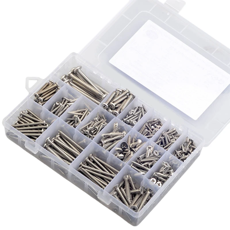 640Pcs Stainless Steel 304 GB845 GB846 Cross Pan Head/Flat Head Tapping Screw Set