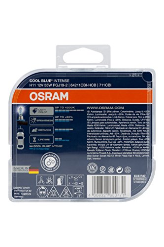 64211cbi-hcb coppia lampade osram cool blue intense h11, lampada alogena per auto, 12v pkw, xenon look 4200k