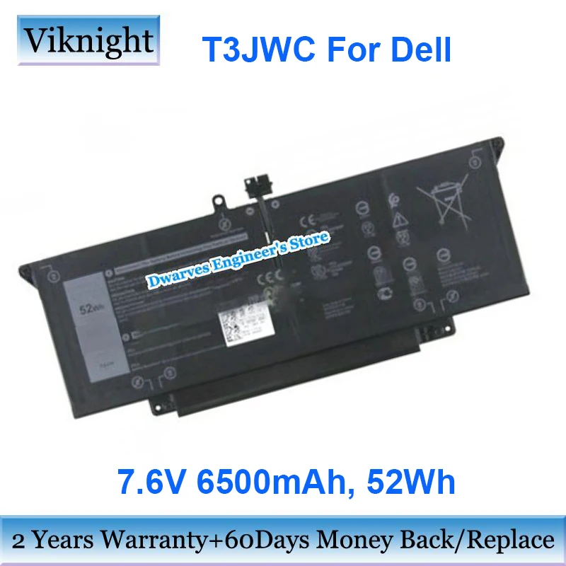 7.6V 6500mAh T3JWC Laptop Battery For Dell 7CXN6 HRGYV XMT81 JHT2H 52Wh