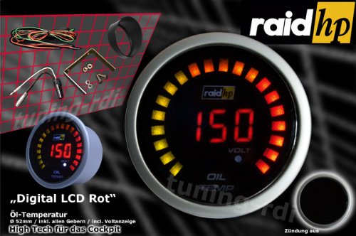 Raid HP 660535 Night Flight - Indicatore digitale della temperatura dell'olio, colore: Rosso