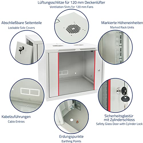 Custodia a parete, armadio di rete con sportello di sicurezza in vetro (vetro temperato, 3,5 mm), bloccabile