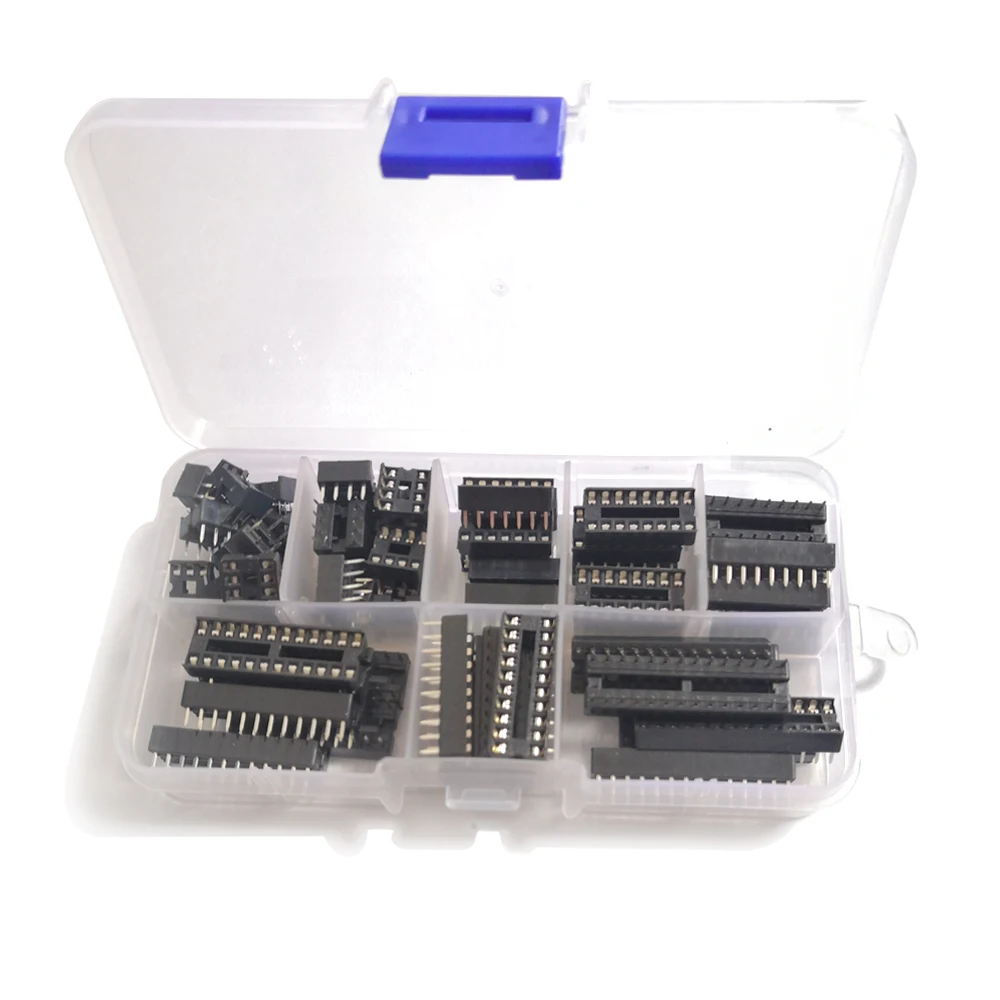 66PCS/Lot DIP IC Sockets Adaptor Solder Type Socket Kit 6,8,14,16,18,20,24,28 pins 8 values+ Box