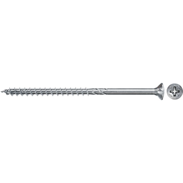 La fischer Power-Fast II FPF II CZP BC è una vite zincata passivata blu con filettatura parziale e slot Phillips PZ 2. La zincatura galvanica non contiene alcun contenuto di cromo VI ed è quindi molto rispettosa dell''ambiente. La vite con testa svasata può essere incassata a filo con la superficie nel legno. Il Power-Fast II con rivestimento in cera ad alte prestazioni riduce la coppia avvitabile e consente anche di avvitare vicino al bordo senza problemi. La vite truciolare ha un comportamento di apertura significativamente ridotto rispetto ad altre viti disponibili in commercio. La filettatura parziale lunga 30 mm consente di tirare insieme gli elementi in legno. La vite truciolare è adatta per il fissaggio di componenti portanti in legno rivestito, legno duro, legno tenero e per connessioni in legno o connessioni di parti metalliche su legno, come raccordi metallici, angoli, scarpe trave e altre connessioni in metallo e legno.