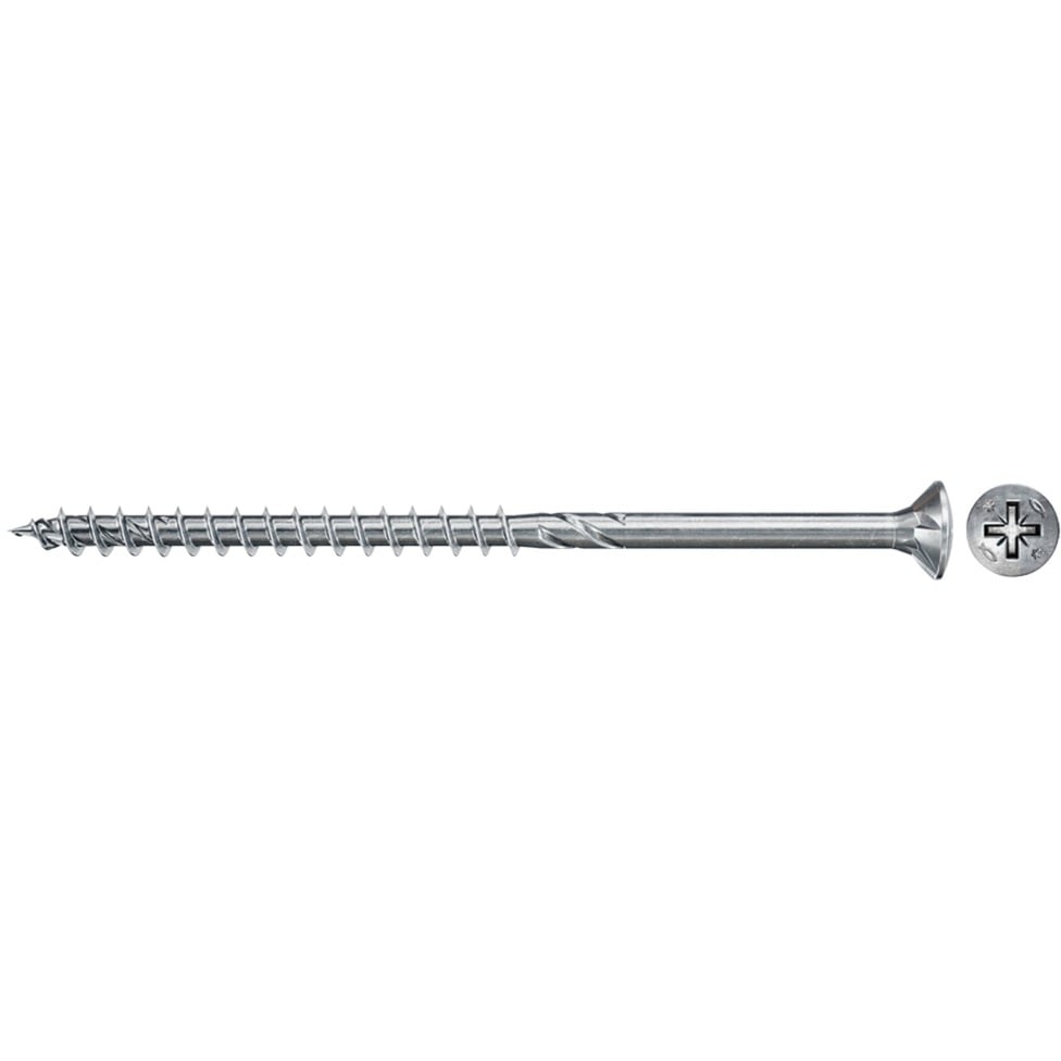La fischer Power-Fast II FPF II CZP BC è una vite zincata passivata blu con filettatura parziale e slot Phillips PZ 3. La zincatura galvanica non contiene alcun contenuto di cromo VI ed è quindi molto rispettosa dell''ambiente. La vite con testa svasata può essere incassata a filo con la superficie nel legno. Il Power-Fast II con rivestimento in cera ad alte prestazioni riduce la coppia avvitabile e consente anche di avvitare vicino al bordo senza problemi. La vite truciolare ha un comportamento di apertura significativamente ridotto rispetto ad altre viti disponibili in commercio. La filettatura parziale lunga 60 mm consente di tirare insieme gli elementi in legno. La vite truciolare è adatta per il fissaggio di componenti portanti in legno rivestito, legno duro, legno tenero e per connessioni in legno o connessioni di parti metalliche su legno, come raccordi metallici, angoli, scarpe trave e altre connessioni in metallo e legno.