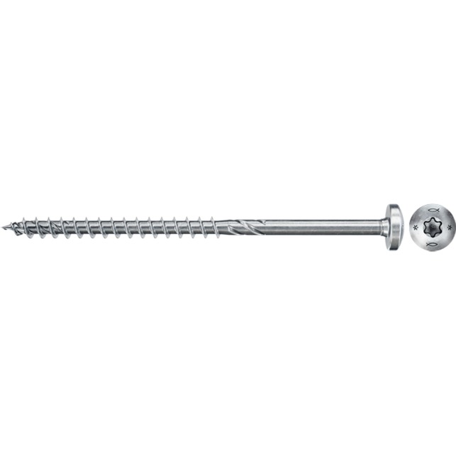 La fischer Power-Fast II FPF II PTP BC è una vite zincata passivata blu con filettatura parziale e azionamento TX 30. La zincatura galvanica non contiene alcun contenuto di cromo VI ed è quindi molto rispettosa dell''ambiente. La vite con la testa semicircolare Pan Head non può essere affondata nel legno. Il Power-Fast II con rivestimento in cera ad alte prestazioni riduce la coppia avvitabile e consente anche di avvitare vicino al bordo senza problemi. La vite truciolare ha un comportamento di apertura significativamente ridotto rispetto ad altre viti disponibili in commercio. La filettatura parziale lunga 45 mm consente di tirare insieme gli elementi in legno. La vite con la testa semicircolare è particolarmente adatta per collegamenti dal metallo al legno, ad esempio quando si fissano raccordi metallici, angoli o scarpe trave.