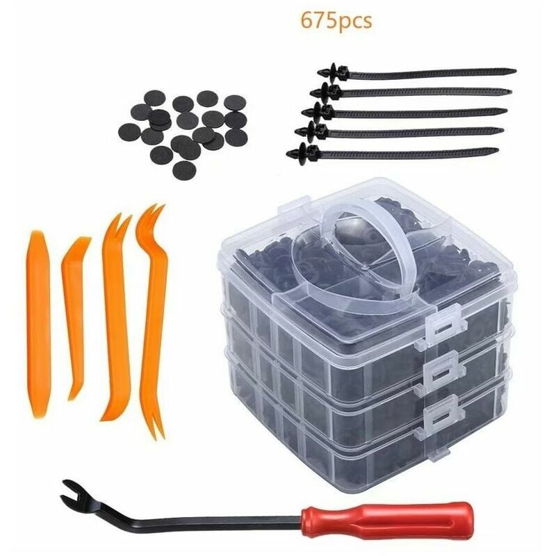 Fermagli universali per auto: 675 pezzi delle 16 misure di fori più comuni da 6 a 10 mm. Le clip sono compatibili con BMW, Benz, Nissan, Subaru, Mazda, GM, Toyota, Honda Chrysler, Lexus, Mazda ecc. Materiale premium: queste clip di fissaggio per auto sono realizzate in materiale premium di alta qualità, resistente, robusto e anti-vibrazione, non facile da rompere o rompere. Una robusta scatola portaoggetti per tenerli organizzati e al sicuro nella cassetta degli attrezzi o nel garage. I supporti a pressione sono facili da rimuovere da soli, non è necessario andare all'autoriparazione, risparmiare tempo e denaro. Ampia applicazione: il nostro kit di rivetti di fissaggio è ampiamente utilizzato per clip di rivestimento, clip per pannelli porta, clip per pannelli porta, clip paraurti, clip parafango, coperchio motore e fermi parafango. Copre anche alcune applicazioni: apparecchiature di telecomunicazione, automobili, elettrodomestici, mobili ed elettrodomestici. Facile da usare e