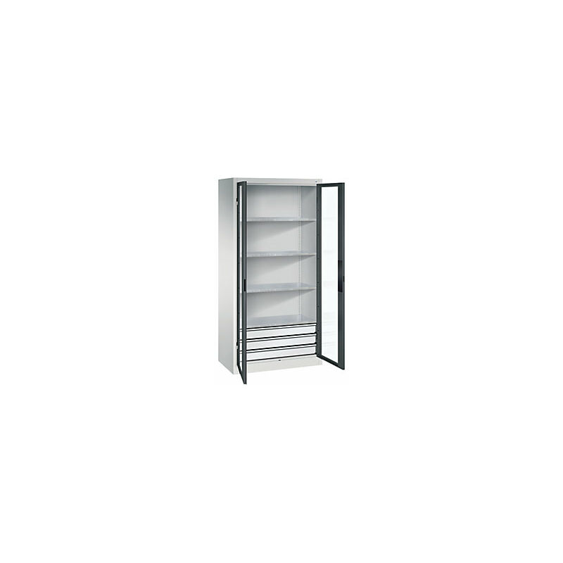 Armadio con ante a battente con finestrella, alt. x largh. x prof. 1950 x 930 x 500 mm, 4 ripiani, 3 cassetti, grigio chiaro / grigio antracite. Fornitura = montato. Altezza = 1950 mm. Larghezza = 930 mm. Profondità = 500 mm. Larghezza interna = 928 mm. Altezza interna = 1840 mm. Profondità interna = 453 mm. Altezza zoccolo = 100 mm. Struttura = con saldatura. Dotazione interna = 4 ripiani, 3 cassetti. Portata struttura = 450 kg. Materiale corpo = acciaio. Materiale porta = vetro acrilico, acciaio. Superficie = con verniciatura a forno. Materiale ripiani = lamiera d'acciaio, zincata. Colore corpo = grigio chiaro RAL 7035. Colore porta = grigio antracite RAL 7016. Portata per ripiano = 70 kg. Colore ripiani = argento. Numero ripiani = 4 pz. Larghezza ripiani = 925 mm. Profondità ripiani = 452 mm. Passo di regolazione altezza ripiani = 15 mm. Tipo di porta = ante a battente con finestrella. Versione porta = con finestrella. Angolo di apertura delle porte = 110 °. Armadi per officina con
