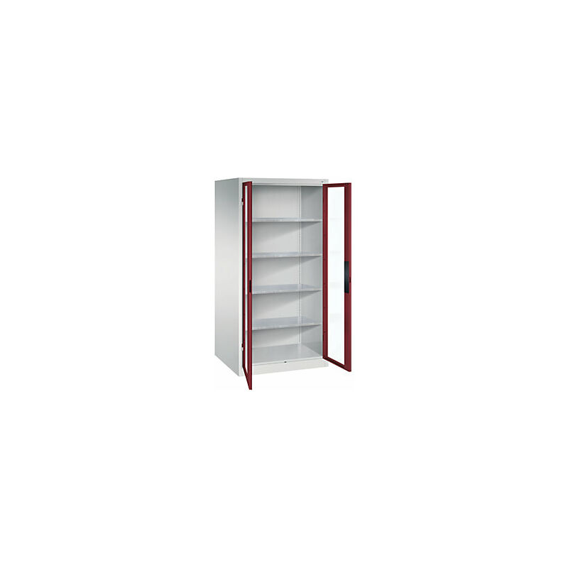 Armadio con ante a battente con finestrella, alt. x largh. x prof. 1950 x 930 x 800 mm, 4 ripiani, grigio chiaro / rosso rubino. Fornitura = montato. Altezza = 1950 mm. Larghezza = 930 mm. Profondità = 800 mm. Larghezza interna = 928 mm. Altezza interna = 1840 mm. Profondità interna = 753 mm. Altezza zoccolo = 100 mm. Struttura = con saldatura. Dotazione interna = 4 ripiani. Portata struttura = 450 kg. Materiale corpo = acciaio. Materiale porta = vetro acrilico, acciaio. Superficie = con verniciatura a forno. Materiale ripiani = lamiera d'acciaio, zincata. Colore corpo = grigio chiaro RAL 7035. Colore porta = rosso rubino RAL 3003. Portata per ripiano = 70 kg. Colore ripiani = argento. Numero ripiani = 4 pz. Larghezza ripiani = 925 mm. Profondità ripiani = 752 mm. Passo di regolazione altezza ripiani = 15 mm. Tipo di porta = ante a battente con finestrella. Versione porta = con finestrella. Angolo di apertura delle porte = 110 °. Armadi per officina con finestrelle per aumentare