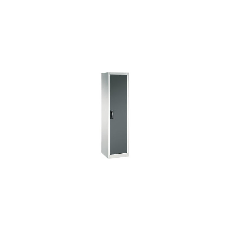 Armadio da officina con ante a battente, alt. x largh. x prof. 1950 x 502 x 500 mm, grigio chiaro / grigio antracite. Fornitura = montato. Altezza = 1950 mm. Larghezza = 502 mm. Profondità = 500 mm. Struttura = saldata. Portata struttura = 450 kg. Materiale corpo = lamiera d'acciaio. Materiale porta = lamiera d'acciaio. Superficie = con verniciatura a forno. Materiale ripiani = lamiera d'acciaio, zincata. Colore corpo = grigio chiaro RAL 7035. Colore porta = grigio antracite RAL 7016. Portata per ripiano = 70 kg. Colore ripiani = zincatura. Numero ripiani = 4 pz. Passo di regolazione altezza ripiani = 15 mm. Tipo di porta = anta a battente. Angolo di apertura delle porte = 110 °. Numerosi colori e dimensioni combinabili in modo personalizzato - Molti altri colori speciali disponibili su richiesta. Con quattro ripiani zincati regolabili in altezza - resistenti alle sollecitazioni meccaniche. Maniglia a conca Ergo-Lock con serratura ergonomica e facile da utilizzare. Abbinabili a molti