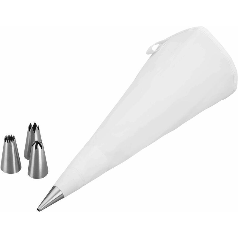 Tasca da pasticcere plastica. 4 beccucci di acciaio inox perfetto per la tua creatività in cucina - LACOR - Réf.: 68973 Poche à décorer - Hauteur 30 cm - Avec 4 douilles inox - A chaque douille son utilisation pour décorer vos pâtisseries comme un grand chef !