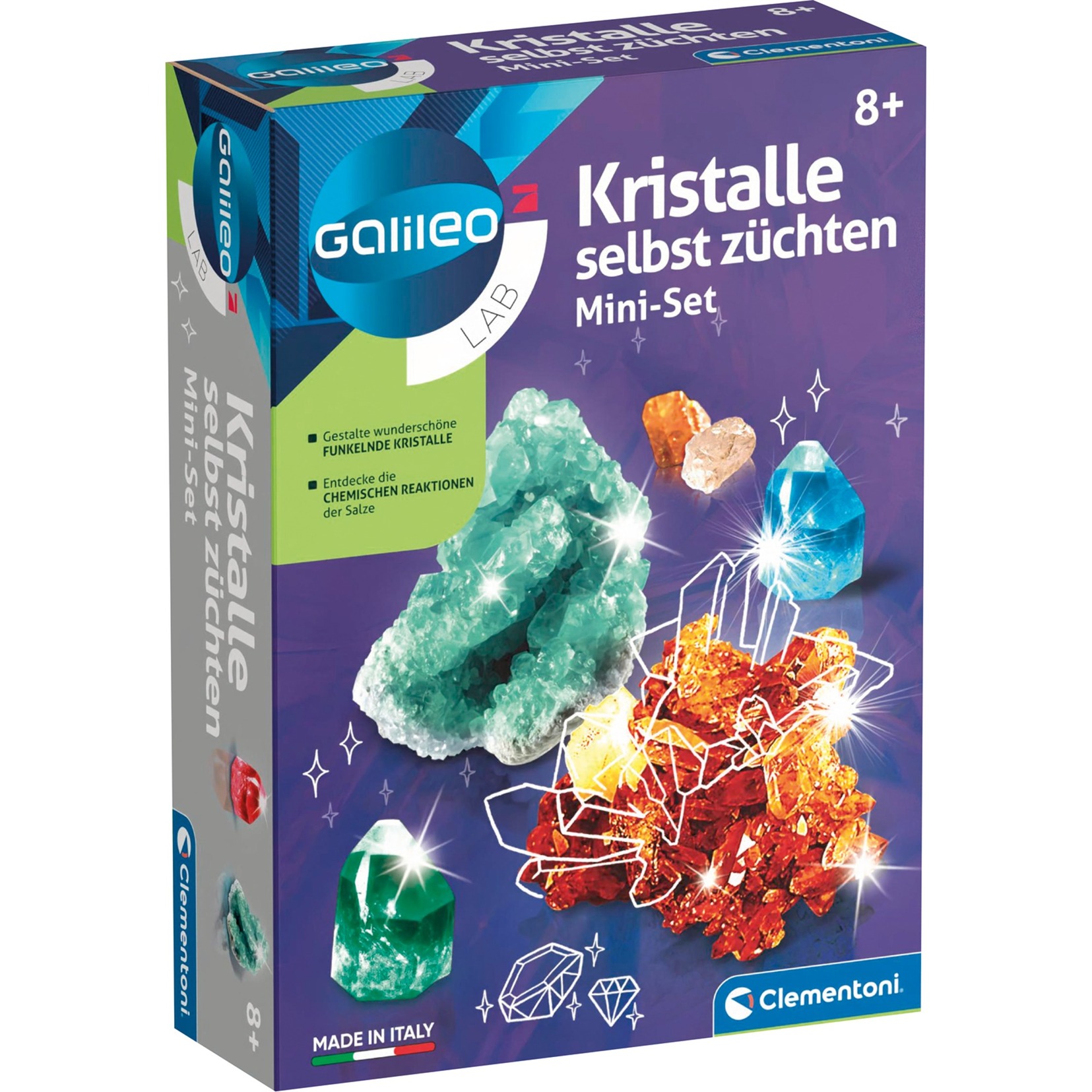 Con questo kit sperimentale di Clementoni, le cause e gli effetti dei fenomeni vengono presentati scientificamente e spiegati ai giovani ricercatori. Con il mini set "Grow your own crystals" puoi coltivare bellissimi cristalli in fantastici colori e vederli crescere.