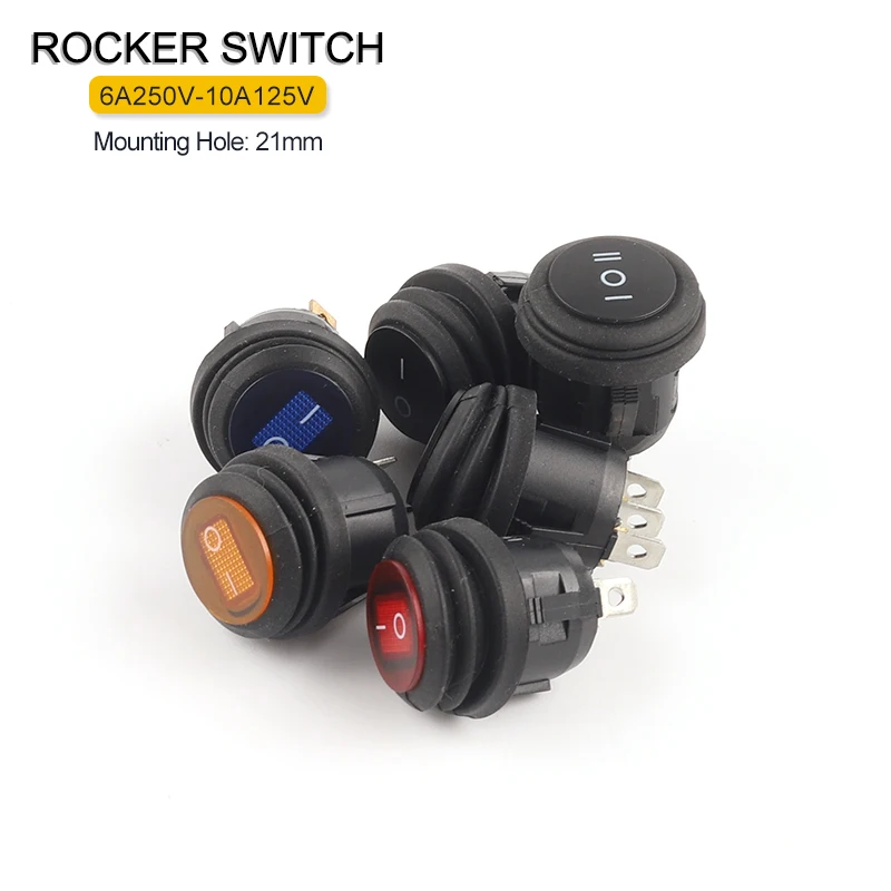 5PCS KCD1 25mm 6A/10A 250V Round Heavy Duty SPST Rocker Switch Waterproof Car Auto Boat Marine Power Button Switch with Light