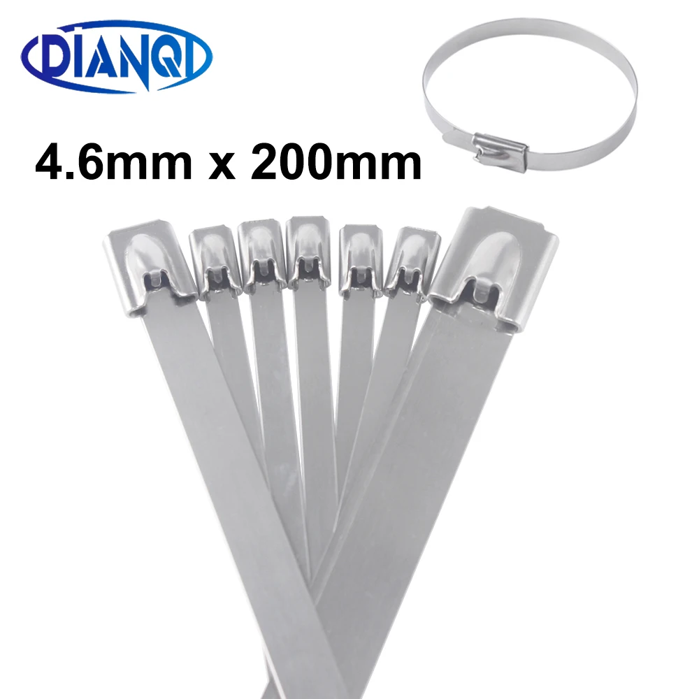 4.6mmx200mm Self-Locking Stainless Steel Zip Cable Tie Lock Tie Wrap Heavy Duty Cable Zip Tie Multi-Purpose Metal Exhaust Ties