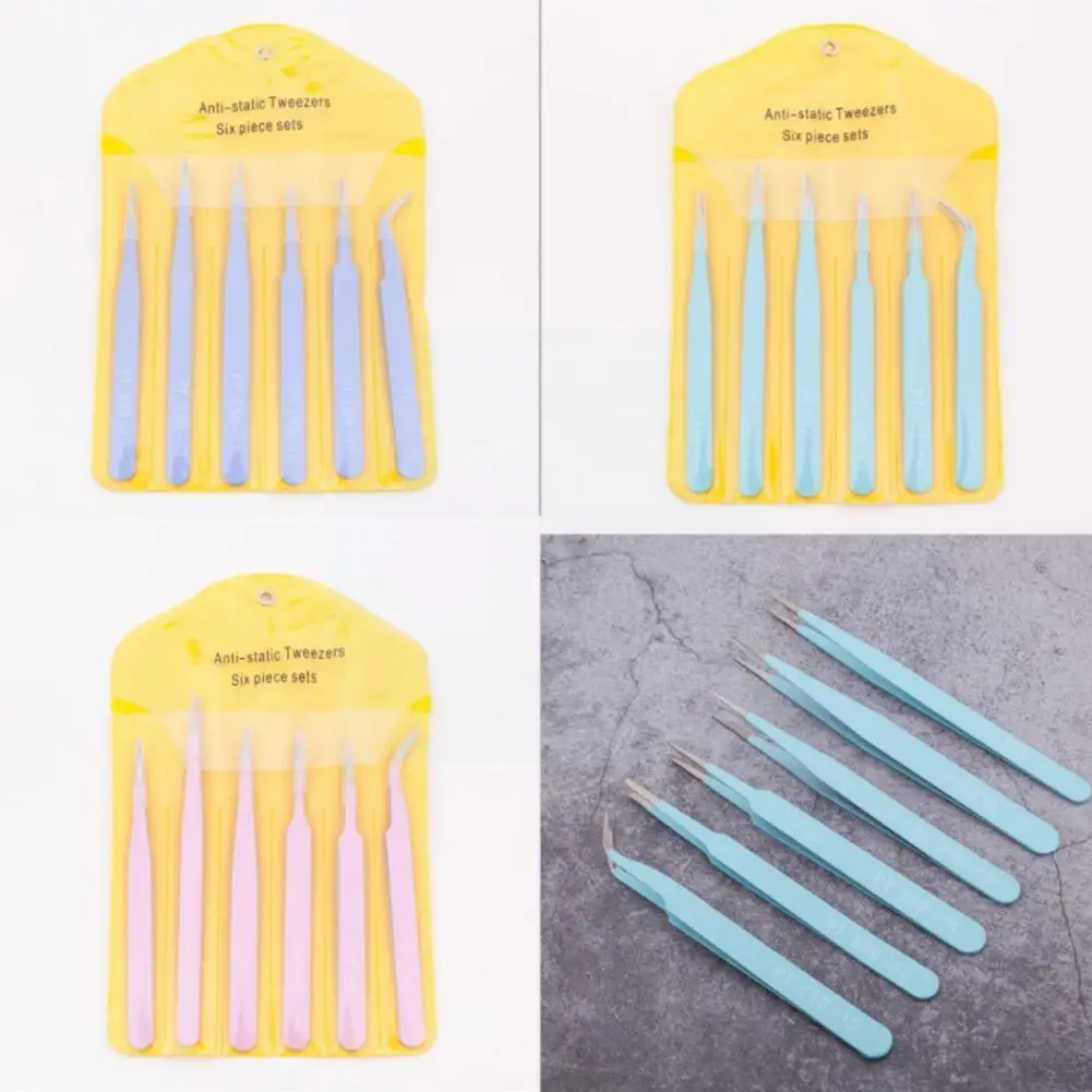 6pcs/lot Anti-static Precision Tweezers Set Pinzas Pincet Electronics Tools Steel Repair ESD Tweezer S2P9