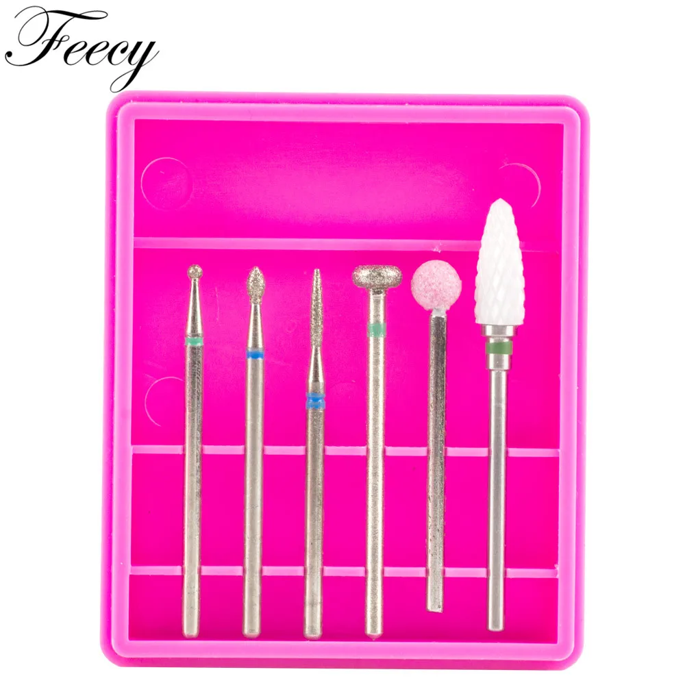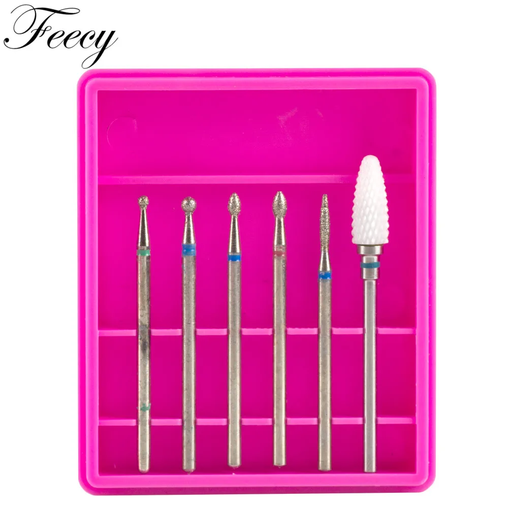 6pcs/Set Ceramic Diamond Milling Cutter for Manicure Nail Drill Bits Accessories Silicon Mill Cutters Pedicure Machine Tools Art