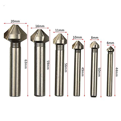 Xuba 6pcs/set flauto punta Svasatore 90 gradi HSS rotonda manico in legno acciaio smusso cutter Tool
