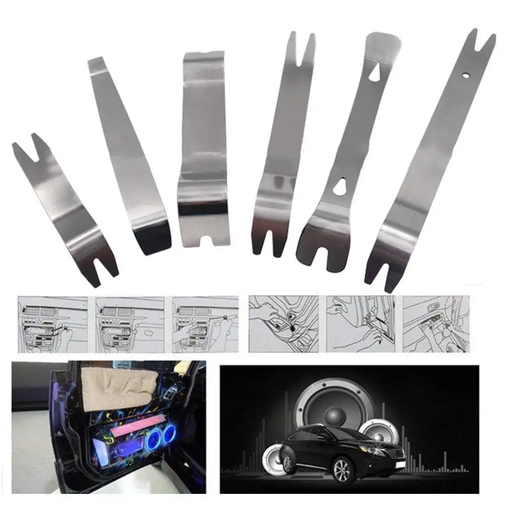 6Pcs/Set High Quality Metal Car Radio Removal Pry Tool Auto Door Dashboard Trim Panel Audio Tools Kit Clip Installing Remov X1F9