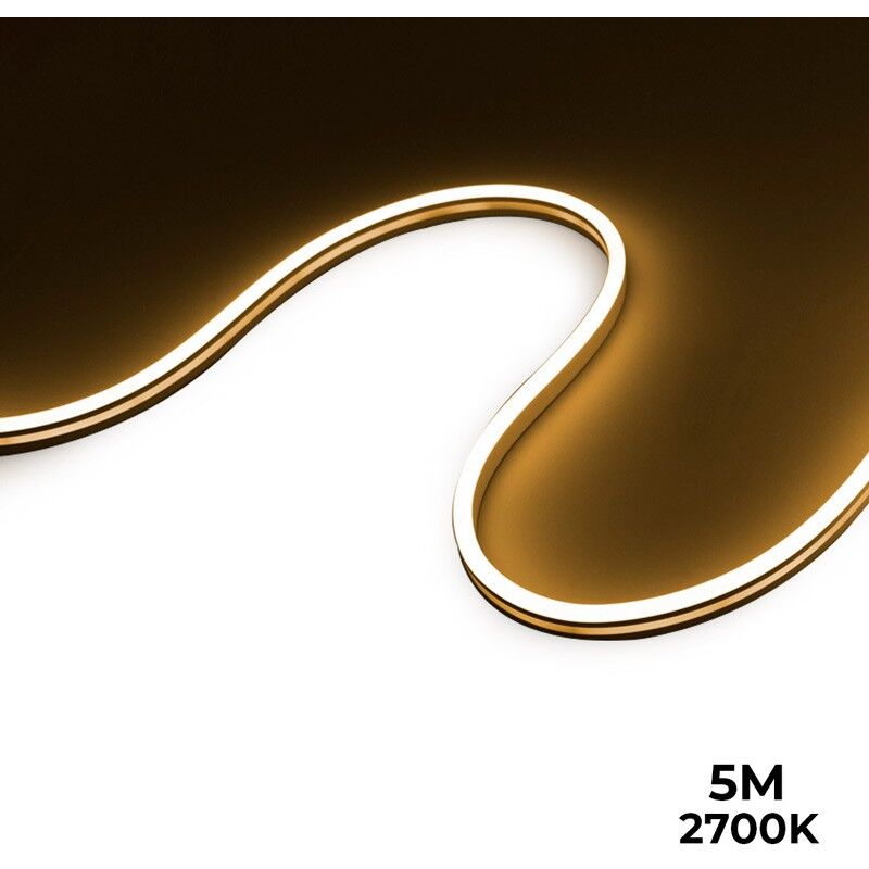 Il nostro neon LED flessibile è la scelta migliore per un'illuminazione decorativa di grande impatto visivo. Si adatta a varie superfici, offrendo un'enorme versatilità per realizzare qualsiasi progetto. Grazie all'elevata densità di chip LED (120 chip/m), garantisce un'illuminazione potente, stabile e omogenea. Inoltre, ha un CRI>90, che permette di visualizzare i colori con un'alta fedeltà, imitando la luce naturale. Questo prodotto è adatto all'uso esterno, poiché è realizzato con un tubo in silicone resistente ai raggi UV e ha un grado di protezione IP67, che ne garantisce la resistenza e la durata. Emette luce da una delle facce laterali, consentendo una flessione orizzontale. Disponibile in 2 tonalità: bianco caldo (2700K) e bianco freddo (5500K). **Il kit completo comprende 15 clip di fissaggio + 6 tappi (4 iniziali e 2 terminali) **.