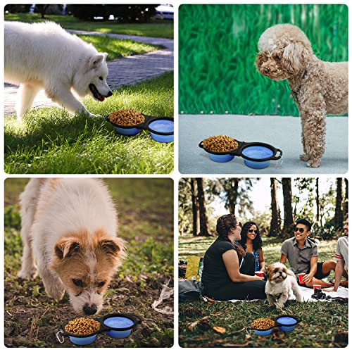 700ml Ciotole Pieghevoli per Cani, 2 in 1 Doppia Ciotola Pieghevole Piatto Portatile Cane Ciotole per Cani da Viaggio Gatti Animali Domestici Cibo Acqua (Blu)