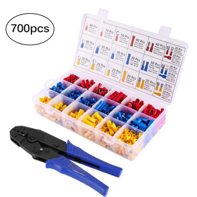 700Pcs Electrical Crimp Connectors Assortment 0.5-6mm Cold Crimping Terminal Pliers Cable Set Hand Tool For Insulated Cable Lugs