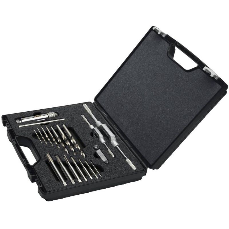 Dettagli tecnici Diametro foro montaggio M3, M4, M5, M6, M8, M10, M12 Materiale punte HSS Tipo prodotto KIT maschi e filiere Incluso nella consegna Maschio a macchina DIN 371-376, M3, M4, M5, M6, M8, M10, M12 Giramaschio regolabile DIN 1814 gr. 1 + 2 Punta elicoidale DIN 338, Ø 2,5, 3,3, 4.2, 5.0, 6.8, 8.5, 10.2 mm Supporto per utensili gr. 2 Calibro di filettatura standard. Testo tradotto automaticamente. Requisiti di sistema null
