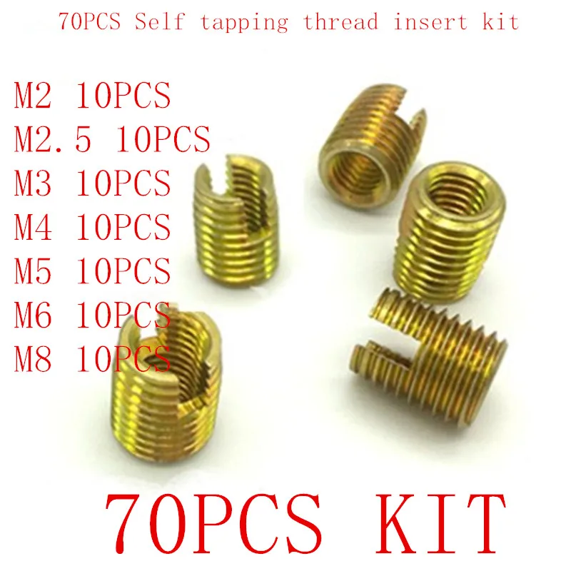 70pcs steel with zinc self tapping thread insert kit, M2 m2.5 M3 M4 M5 M6 M8 Helical Insert Self Tapping Slotted Screw