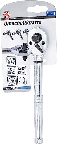 BGS Diy 71015 - Cricchetto reversibile, in acciaio massiccio, dentatura fine, 3 in 1, uscita quadrato esterno 6,3 mm, 10 mm, 12,5 mm (1/2")