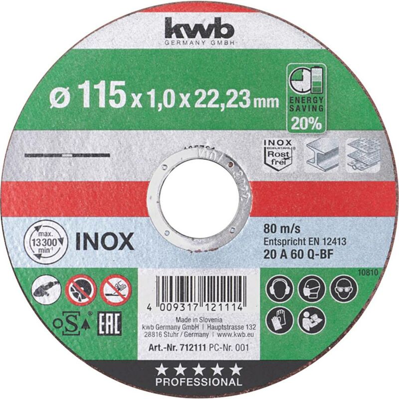 Dettagli tecnici Contenuto 1 pz. Dimensione, Ø 115 mm Dimensioni (Ø) 115 mm Idoneità del materiale Acciaio cromo nichel, Metalli non ferrosi, Acciaio Spessore 1 mm Tipo prodotto Disco di taglio dritto Ø foro 22.23 mm RONDELLA A TUBE PER ESTRONDA KWB TOP Adatto per la separazione meccanica di acciai al cromo-nichel, metalli non ferrosi e acciai. Soddisfa le norme di sicurezza in conformità con EN 12413. Spessore 1,0 - 1,9 mm a seconda del diametro. Diversi diametri da 115 a 230 mm per macchine disponibili in commercio fino a 13000 min-1. A partire da un diametro di 150 mm, un'ulteriore posizione di rinforzo per un funzionamento stabile senza vibrazioni o rottura del pezzo. Modello dritto, non piegato. Testo tradotto automaticamente Incluso nella consegna null Requisiti di sistema null
