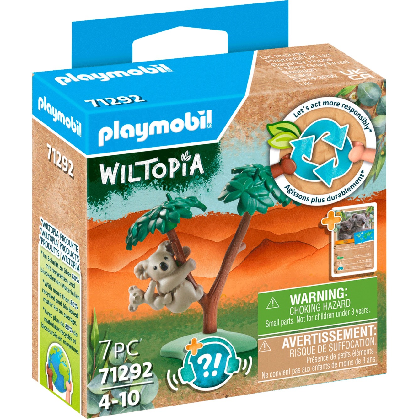 Il mondo di gioco Wiltopia di PLAYMOBIL invita i bambini a scoprire emozionanti regioni del nostro mondo e i loro numerosi abitanti animali che vale la pena proteggere, e combina gioco e apprendimento in un modo unico. La madre koala ha sempre il suo cucciolo sulla schiena. I due si arrampicarono su un albero per mangiare.