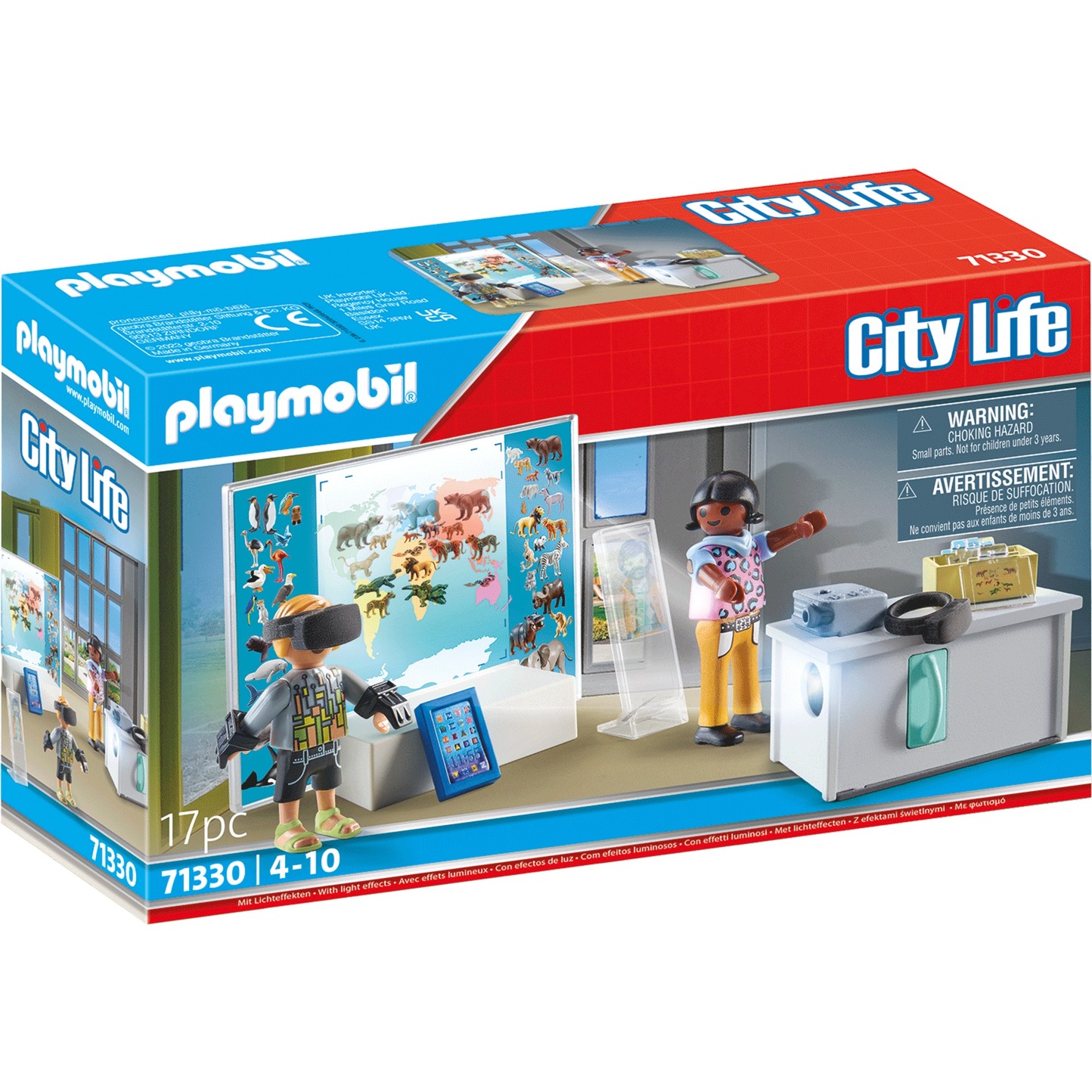 Con questa grande classe, i bambini di PLAYMOBIL City si immergono nei mondi dell''apprendimento digitale. Contiene un proiettore funzionante con il quale possono essere proiettate varie tavole fotografiche, con occhiali VR i bambini possono anche avere esperienze di apprendimento emozionanti. Accessori aggiuntivi come un tablet completano l''attrezzatura completa di questa aula didattica virtuale.