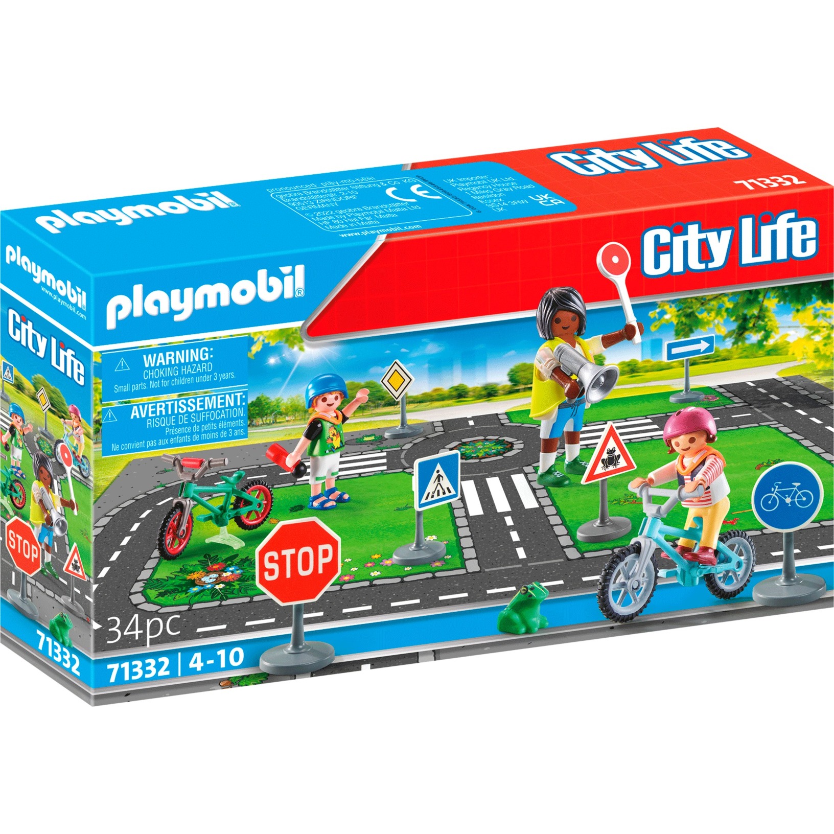 Nel mondo di PLAYMOBIL City Life, il test della bicicletta è imminente! È tempo di esercitarsi in modo che i bambini possano andare a scuola in sicurezza nel prossimo futuro. Questo set crea un campo di allenamento completo per un comportamento corretto nel traffico stradale. In questo percorso, è importante padroneggiare il percorso in sicurezza e osservare i segnali e la segnaletica orizzontale. Ma attenzione: non guidare troppo veloce, altrimenti la rana potrebbe mettersi sotto le ruote!