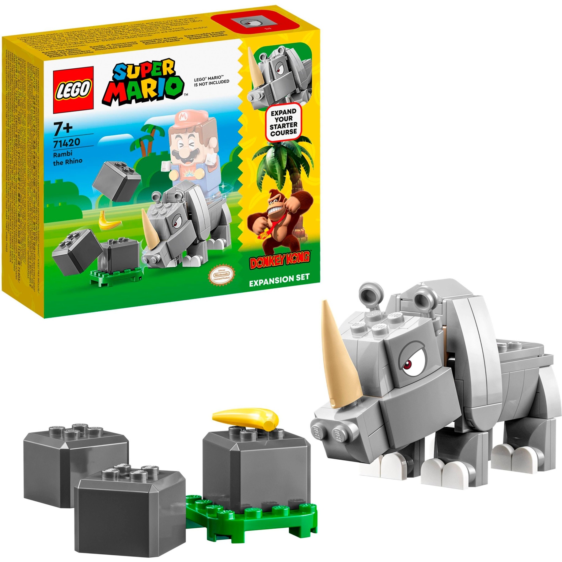Questo set di espansione rende LEGO Super Mario ancora più emozionante: un personaggio interattivo Mario, Luigi o Peach (non incluso) può cavalcare Rambi il rinoceronte. Quando il personaggio LEGO Rambi cammina, si schianta contro le rocce impilabili o fa altri movimenti, la figura interattiva emette suoni. Questo set di espansione è composto da 106 parti ed è completamente utilizzabile solo insieme a un set iniziale.