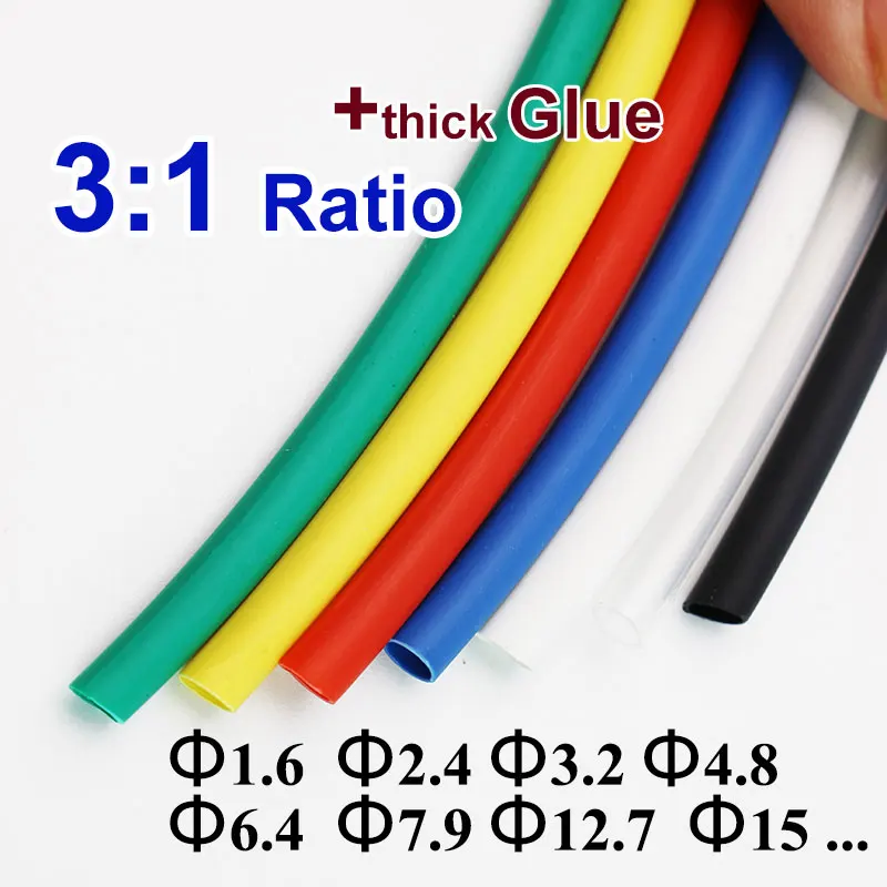 1M1.6/2.4/3.2/4.8/6.4/7.9/9.5/12.7/15mm Dual Wall Heat Shrink Tube 3:1 ratio Adhesive Lined with Glue Tubing Wrap Wire Cable kit