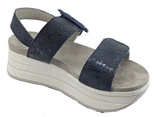 IGI&CO 7162066 Nab. St. Princ. Blu Sandali per Donna in pelle blu effetto squamato con zeppa media (Taglia 38)