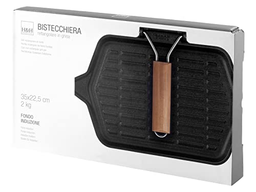 Home 728150 Bistecchiera 1 Manico, Ghisa, Rettangolare, cm22.5x35