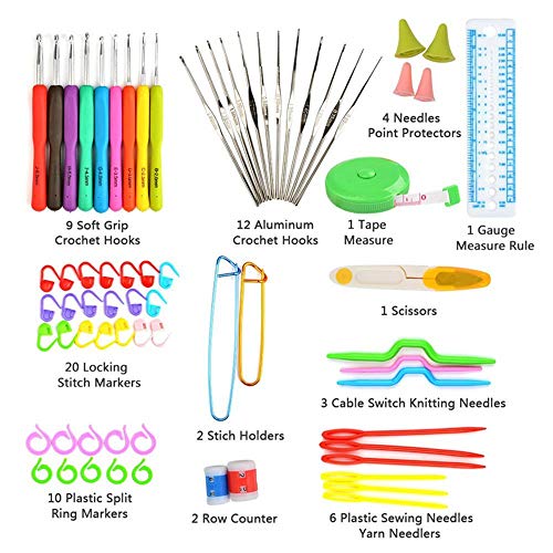 KIT PERFETTO: Il kit di attrezzi per tessitura all'uncinetto da 72 pezzi include 9 uncini per uncinetto, aghi per maglieria in acciaio 12x, 10 anelli per anelli spaccati in plastica, 20 segnapunti per cucire e molti altri strumenti per tessere per soddisfare le tue diverse esigenze di lavorazione.