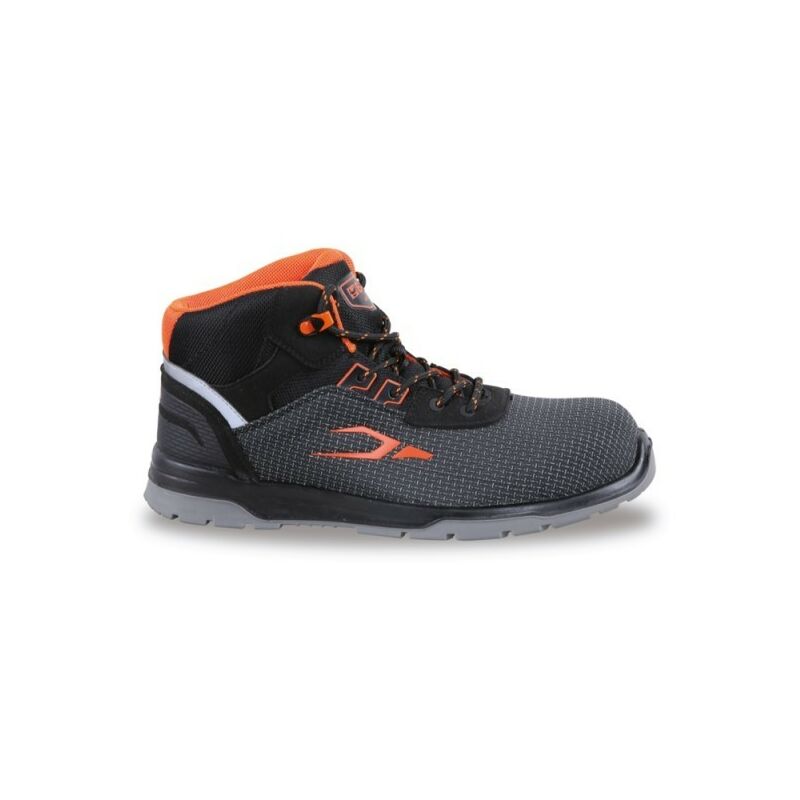 Scarpe alte in tessuto altamente resistente all'abrasione con rapido sfilamento Tomaia Tessuto altamente resistente all'abrasione con supporto di stabilità al tallone Suola Poliuretano bidensità Puntale Materiale polimerico, resistenza 200 Joule Antiperforazione Fibra composita con trattamenti ceramici Sottopiede Anatomico con rialzo ammortizzante nella zona del tallone Taglie EU: 35-48 UK: 2,5-13