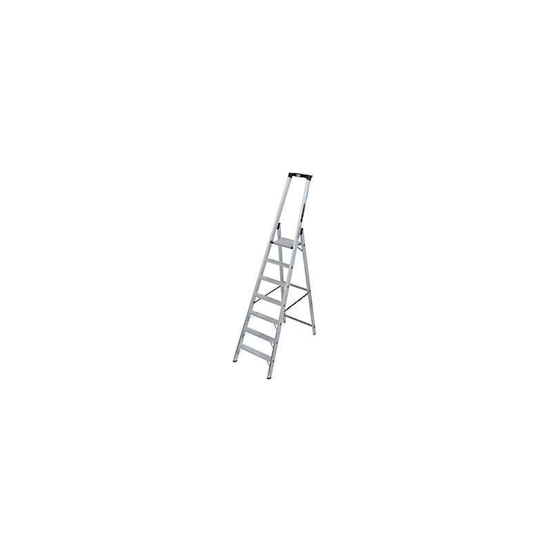 Scala a libro per carichi pesanti, salita da un lato, fino a 225 kg, 7 gradini incl. piattaforma. Fornitura = montato. Tipo di prodotto = scale a libro con gradini, salita su un lato. Altezza di lavoro = 3.65 m. Salita = su un lato. Versione da salita = gradini. N. gradini, piattaforma inclusa = 7 pz. Materiale telaio = alluminio. Materiale gradini = alluminio, striato. Profondità gradini = 80 mm. Altezza piattaforma = 1650 mm. Peso = 11.7 kg. Lunghezza montanti = 2700 mm. Larghezza piattaforma = 301 mm. Profondità piattaforma = 262 mm. Colore telaio = argento. Portata = 225 kg. Altezza verticale = 2500 mm. Larghezza esterna in basso = 650 mm. Altezza totale = 2500 mm. Resistenti scale a libro a gradini con salita da un lato per impieghi gravosi fino a 225 kg. Staffa di sicurezza extra alta con ripiano portattrezzi fissato a vite e gancio per secchio integrato. Robusta piattaforma di sicurezza in alluminio con profilatura antiscivolo, sollevabile da entrambi i lati. Gradini a D