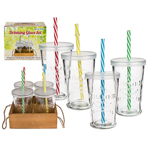 Out of the blue 78/7843 Set da 4 Bicchiere con Coperchio e Cannuccia, Modello Summer Party, Multicolore, 7.5 x 18 x 7.5 cm, 4 unità