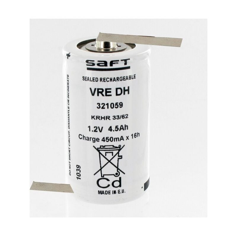 Saft 1.2V 4.5Ah VRE DH NiCd 792197 - di fronte ai pod di saldatura TETON TOP Formato D, LR20, VTD 137 KRHR 33/62, 321059 410907-104 791042 Adatto per BAES LEGRAND 60825 F, TS 88 622 791285 HBG