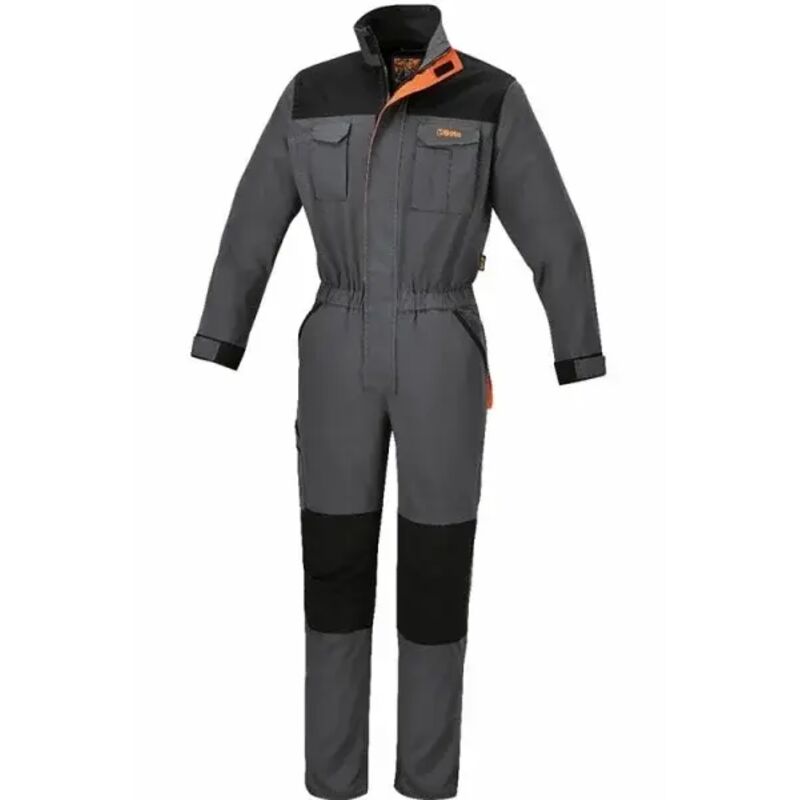 La tuta da lavoro Beta 7935G, è una tuta in cotone elasticizzato, dal design slim fit e dal peso di 220g.La Beta 7935G dispone di chiusura frontale con zip e doppio cursore, coperta da patella con chiusura a strappo.I suoi polsini sono regolabili a strappo e la vita è elasticizzata per garantire maggiore comfort, inoltre è dotata di porta ginocchiere.La tuta Beta 7935G presenta inoltre:Due ampie tasche anteriori-Tasca porta metro e fascia porta martello-Tasca sinistra al petto con chiusura a strappo dotata di inserto portabadge ed inserti porta penne-Taschino destro al petto con chiusura a strappoComposizione97% cotone, 3% tessuto elasticizzato Tessuto: 97% cotone, 3% tessuto elasticizzato Modello: Tuta da lavoro Colore: Grigio Peso: 220 g