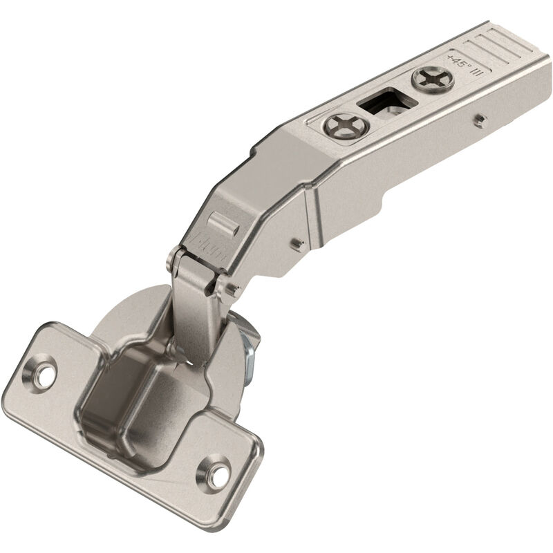 CLIP top cerniera ad angolo 79A9458.T Angolo di apertura 95° con regolazione in altezza Angolo mobile: 45° Piegatura a gomito: battuta sovrapposta fissaggio fondello da avvitare materiale fondello: acciaio meccanismo di chiusura con molla con regolazione in altezza Regolazione laterale: +/- 2 mm Regolazione della profondità: +/- 2 mm, comodo, con vite senza fine filettata Contenuto: 1 pezzo Finitura: Nichelato Confezioni di imballo: 50