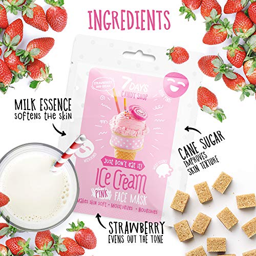 7DAYS Maschere Viso in Tessuto microfibra Idratante, Antirughe con Fragole, Olio di Mandorle, Mirtillo, Banana / Skincare Maschera Set, 3 pz x 25g