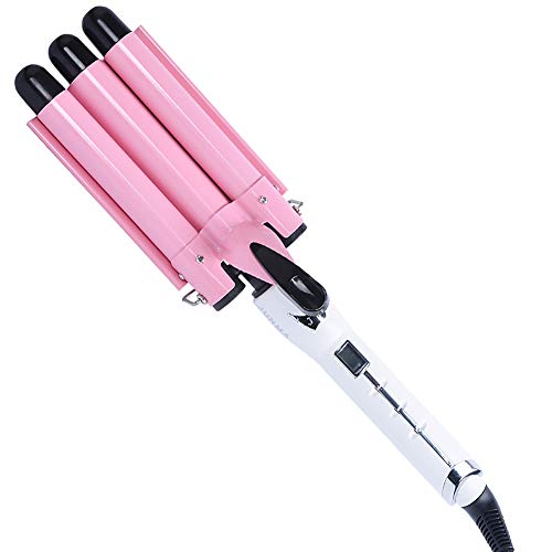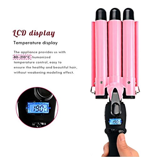 7HAHA3 Ferro Arricciacapelli Curling Iron Three Barrel Riscaldato Rapido Crea la Moda Fluffy Regular Curls Ceramic Curling Wand Professional Hair Styler Hair Bigoders,pink1