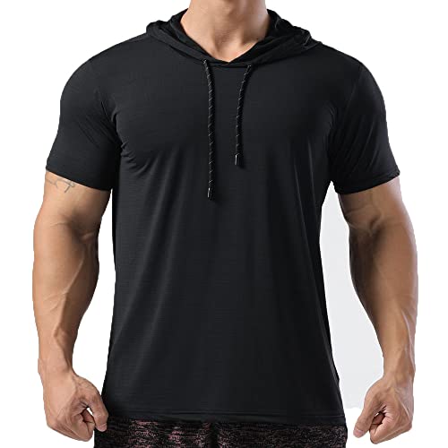 7Power Felpe con Cappuccio Pullover Manica Corta da Uomo Felpa con Cappuccio Slim Fit in Rete Quick Dry T-Shirt Felpa Casual Color Black Size S
